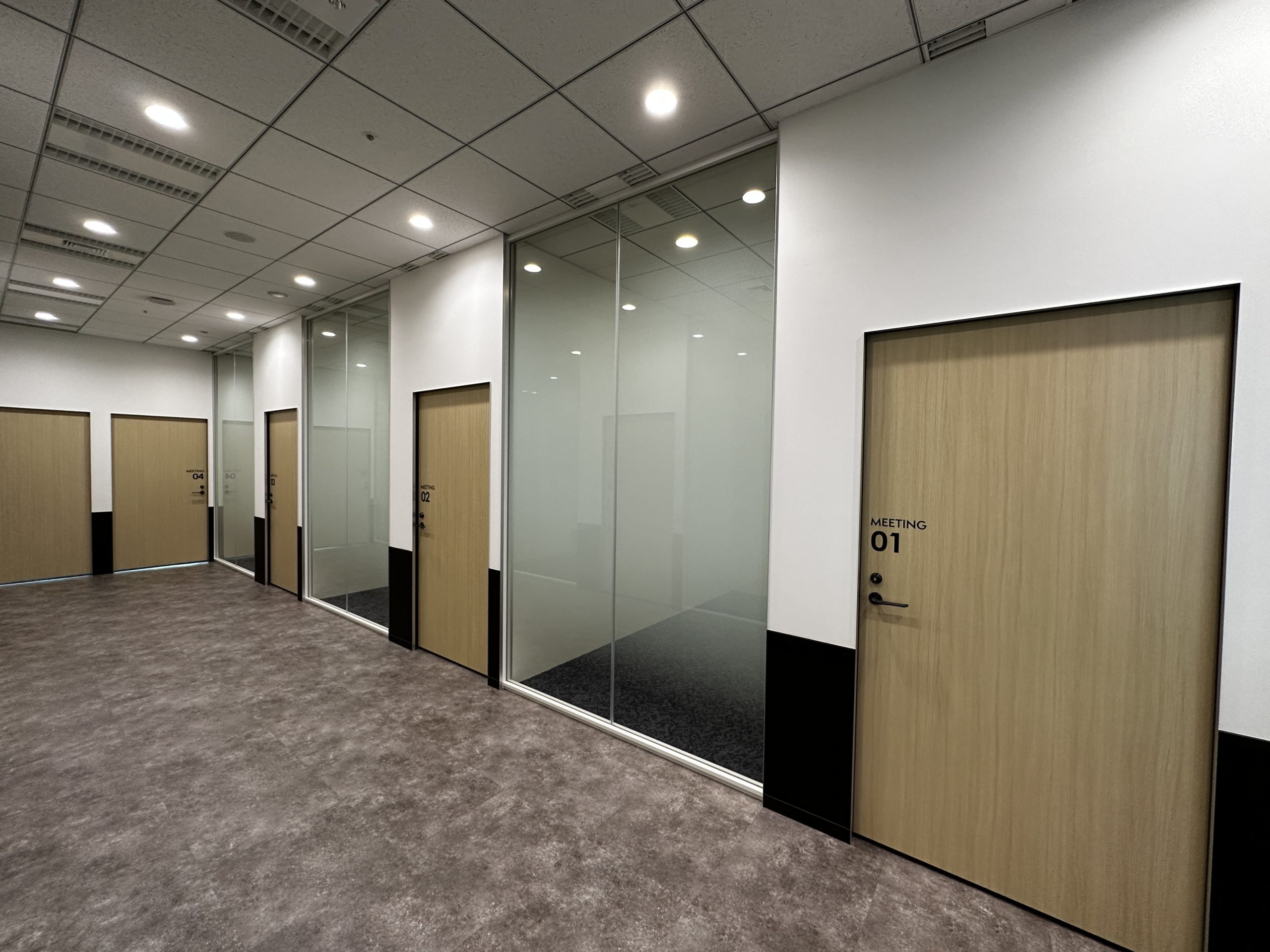 The bookshelf houses a tree-inspired sculpture enhanced with projection mapping, delivering corporate stories, branding visuals, and messages for visitors. Through immersive lighting, 360-degree imagery, and enveloping sound, the space blends virtual and real experiences—creating an office people actively want to visit.